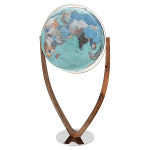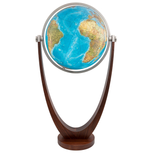 The base is made from chromed steel with walnut hardwood pillars. The chromed meridian allows a 360° exploration of the sphere which rotates on two axes.